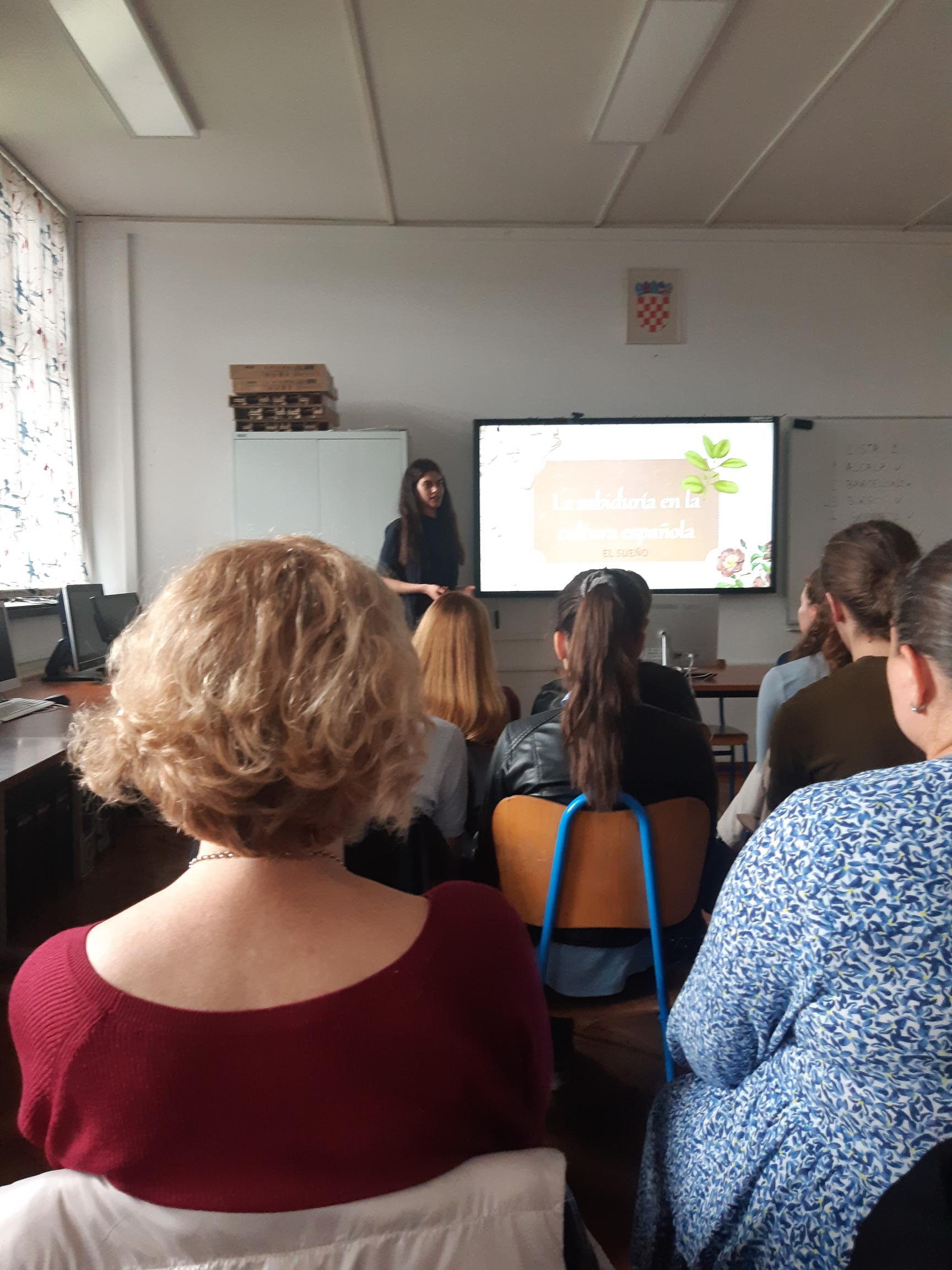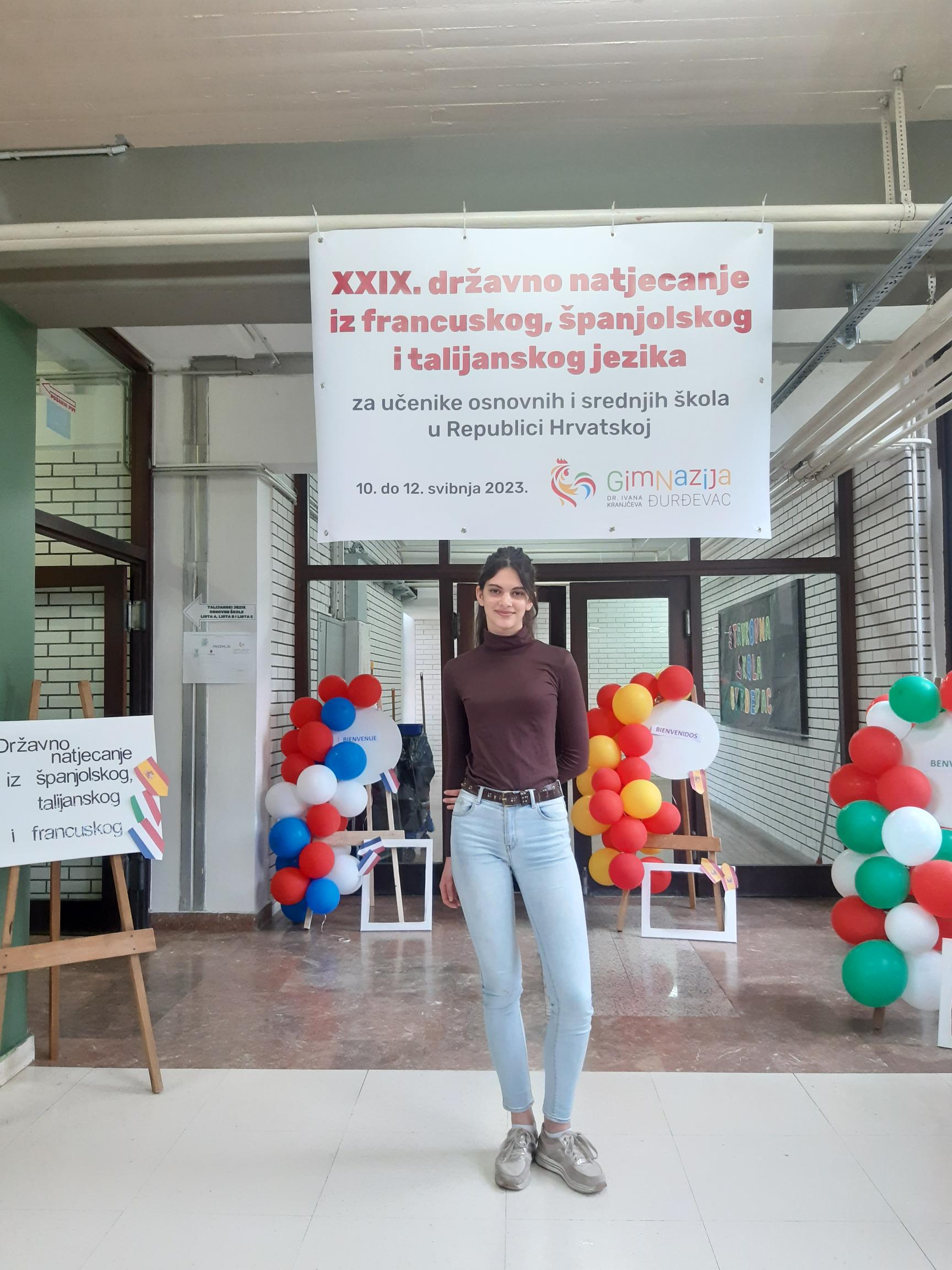 Naša učenica Klara Bošković (4.d) je sudjelovala na Državnom natjecanju iz španjolskog jezika koje se ove godine odvijalo od 10. do 12. svibnja u Đurđevcu i na kojem je naša Klara osvojila 1. mjesto! Osim što se istaknula u svim jezičnim vještinama, učenica je održala izlaganje na ovogodišnju zadanu temu Mudrost u španjolskoj kulturi.