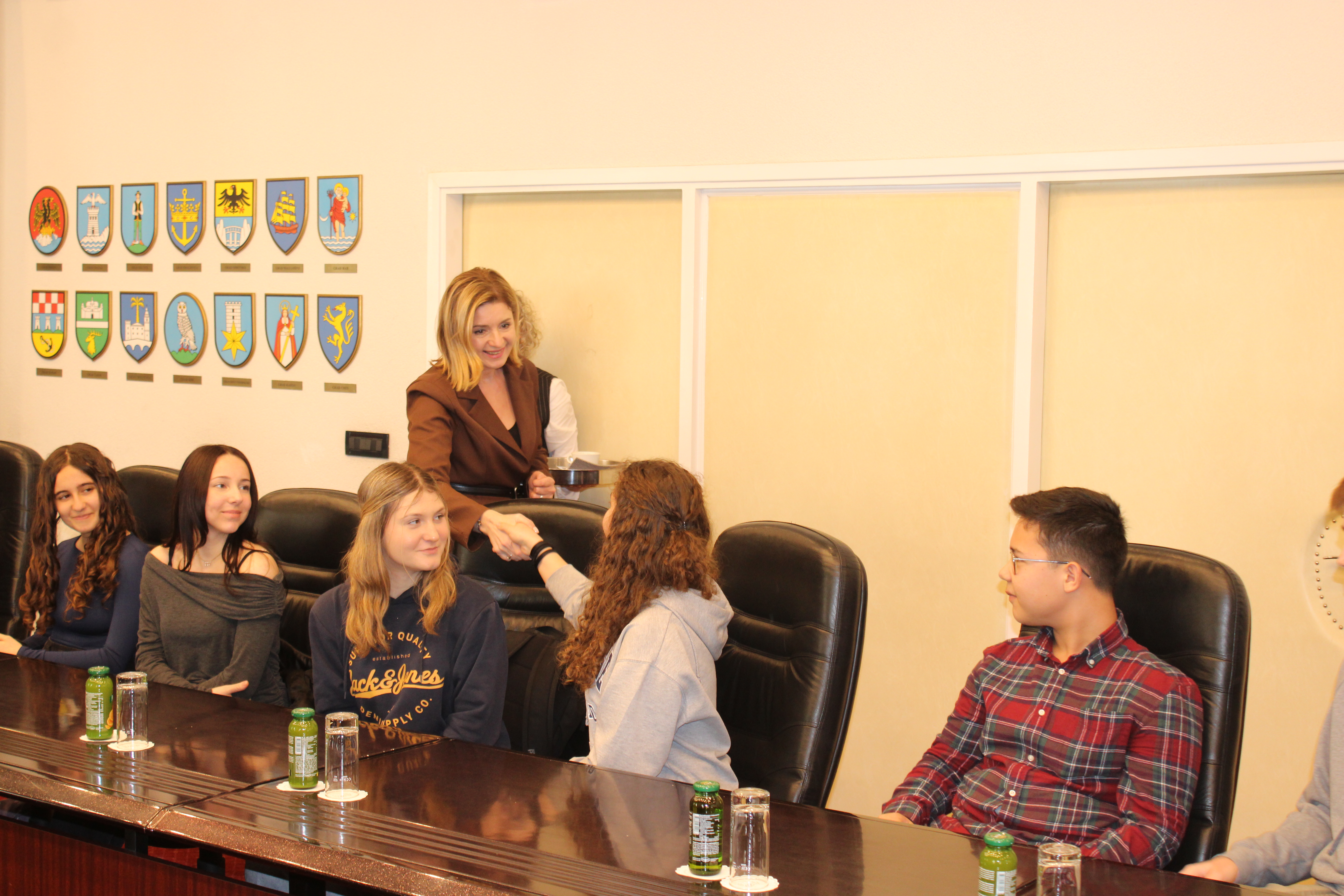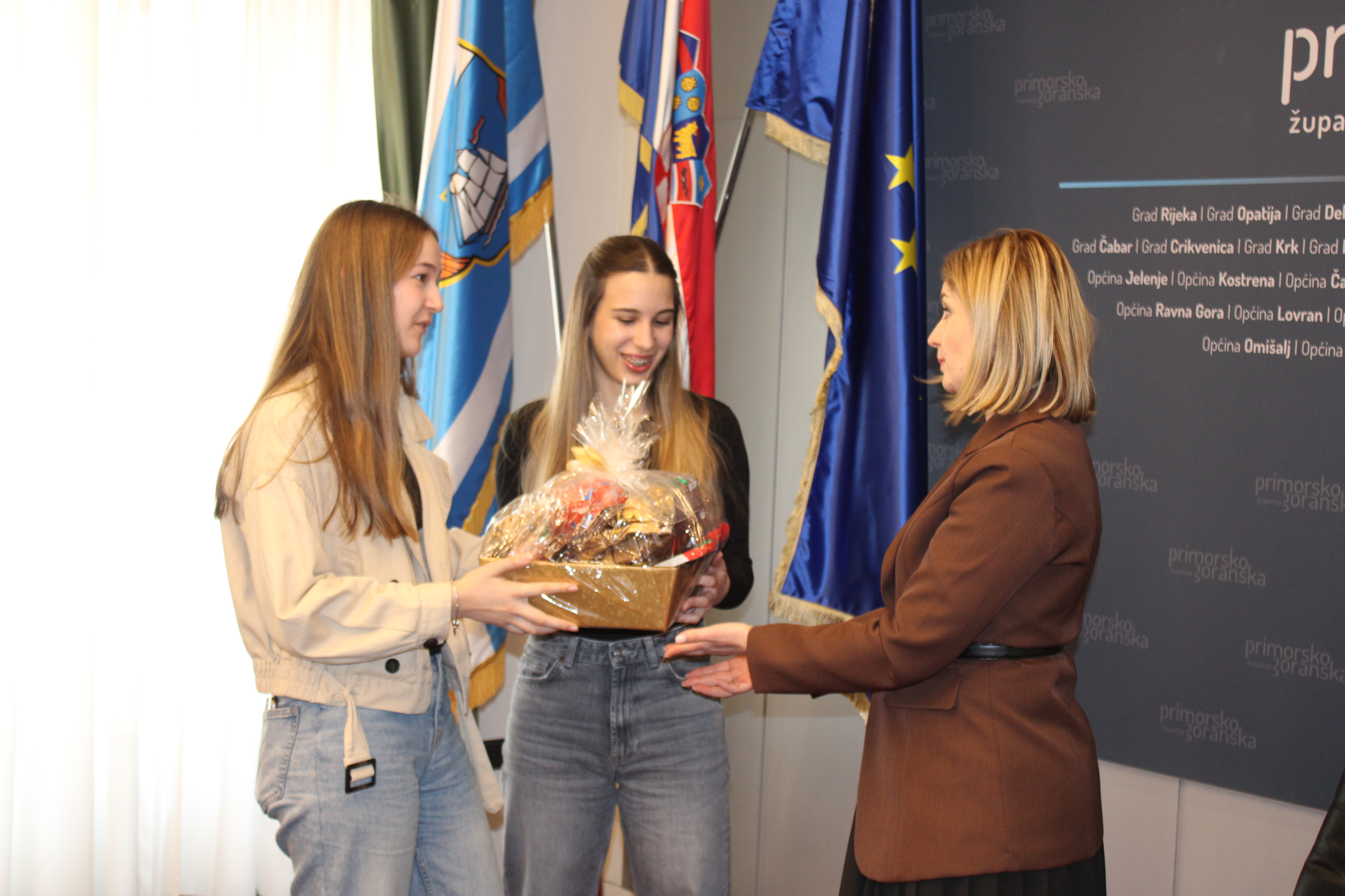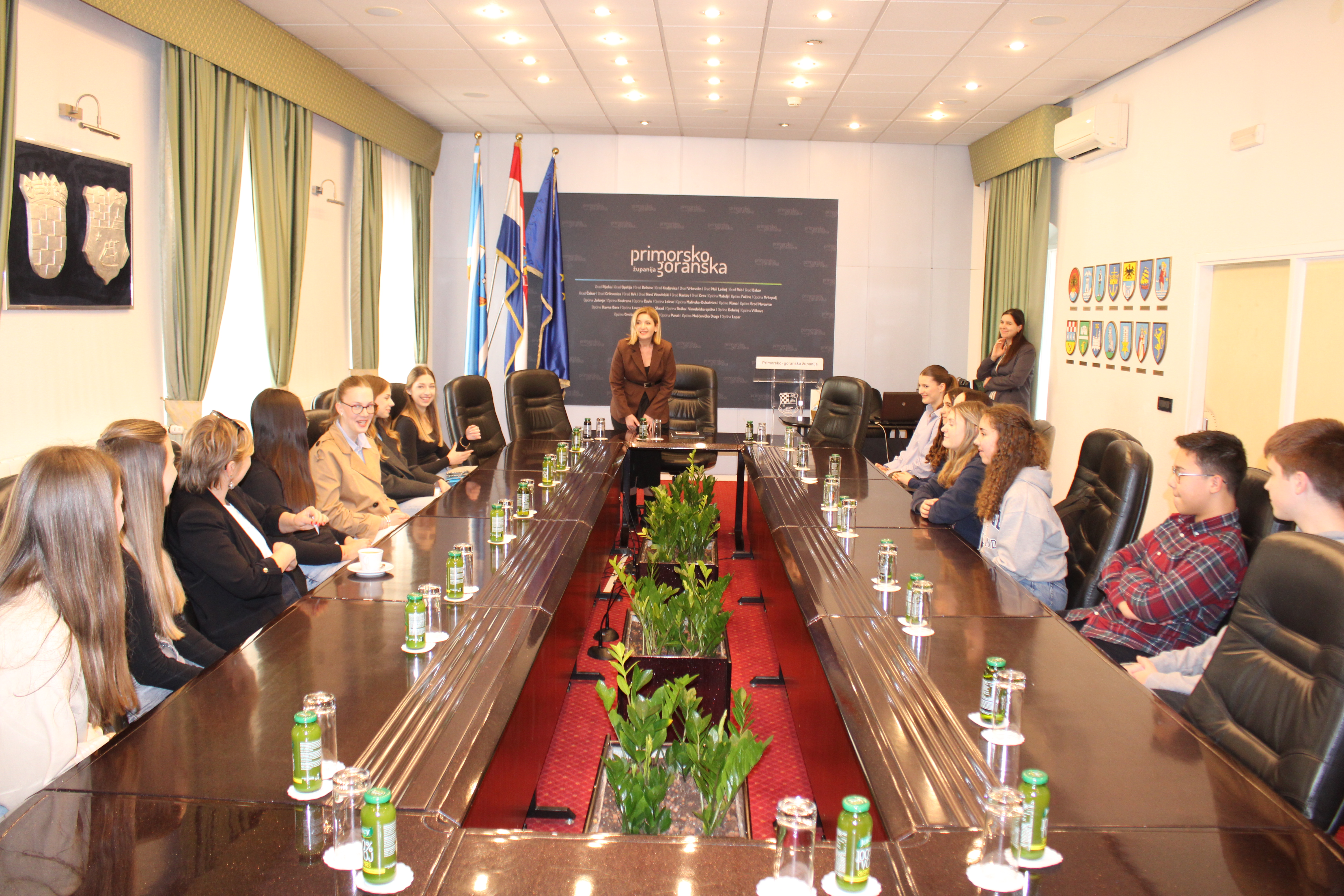 Učenike 1. b razreda Prve riječke hrvatske gimnazije primila je Ermina Duraj, pročelnica Upravnog odjela za poslove župana i Županijske skupštine, kao predstavnica župana Zlatka Komadine. Prijem je održan u sklopu Erasmus+ projekta "P.S. – Pokreni solidarnost" koji se već niz godina provodi u školi.