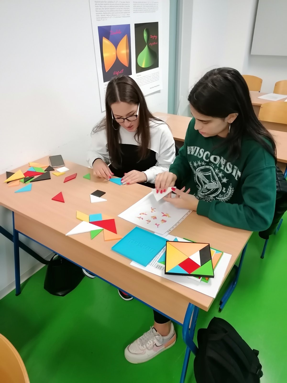 Četrdesetak učenika Prve riječke hrvatske gimnazije prvi dan prosinca, kada se dulji niz godina obilježava Večer matematike, proveli su na Fakultetu matematike u Rijeci. Ljubazni domaćini za nas su organizirali matematičke igre Hex, Tantrix, Agon, Royal Game of Ur, Prime Stone, Set, Spot it!, Sesqui, Produto, Tangram, Ostomachion, Pentomino, Trilja, Pentalpha, Kule od Hanoja. Učenici su se najprije upoznali s načinom igranja svake igre, a zatim su u parovima ili manjim skupinama odigrali neke od njih. Igrajući se ponovili su matematičke pojmove, a vježbali su i jednu vještinu koja nam u današnje vrijeme svima nedostaje, strpljenje.
