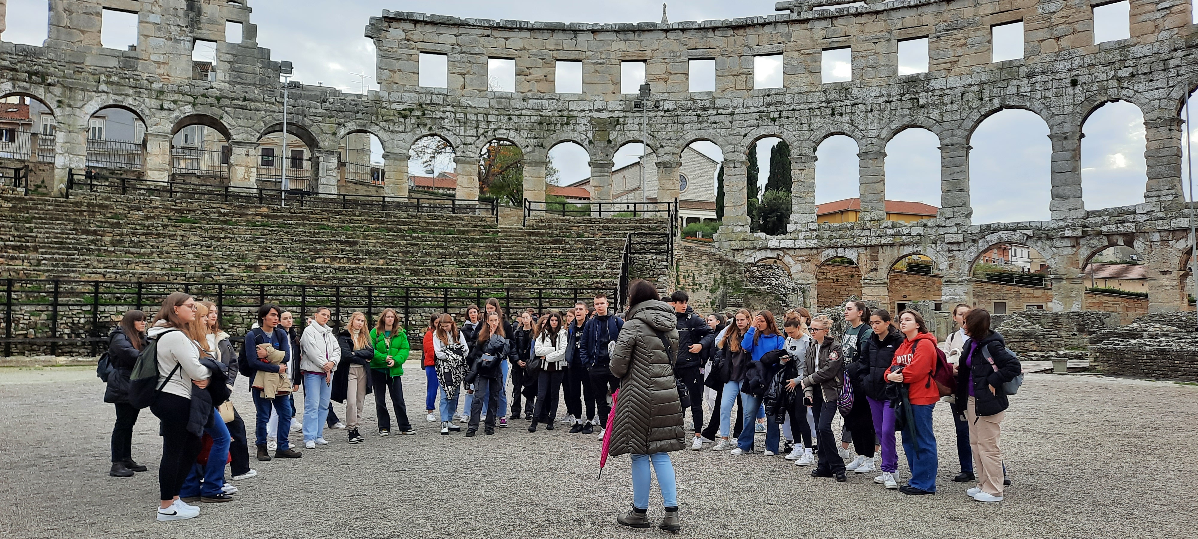 Dana 1. prosinca 2023. učenici prvih razreda Prve riječke hrvatske gimnazije uputili su se na jednodnevnu izvanučioničku nastavu u grad Pulu uz pratnju nastavnika iz Povijesti, Latinskog, Geografije, Hrvatskog i Biologije.
