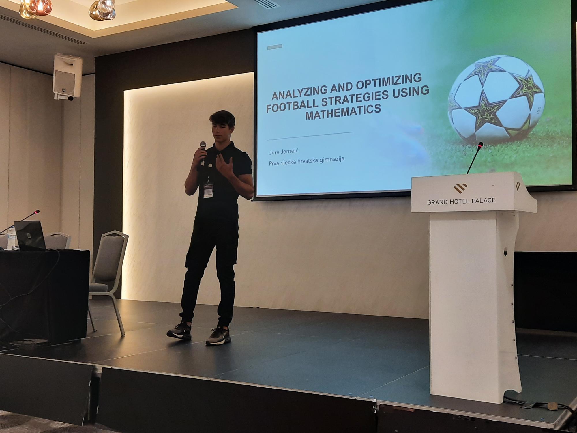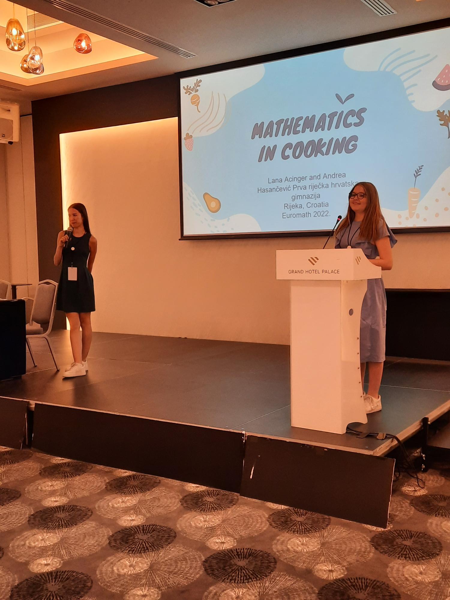 Učenica 3.b razreda Ana Ivković sa svojom temom “Mathematically determining the time by looking at the Sun“, Viktorija Kavain iz 3.d razreda s temom “Page to stage“, učenice 2.b Lana Acinger i Andrea Hasančević u paru su predstavile rad na temu “Mathematics in cooking” te njihov kolega iz razreda Jure Jerneić sa svojom prezentacijom “Analyzing and optimizing football strategies using mathematics” povezali su naučeno znanje matematike s raznim područjima svakodnevnog života. Učenici su zadovoljni svojim nastupom i stečenim iskustvom kao i okusom gyrosa, souvlakija i tzatzikija.