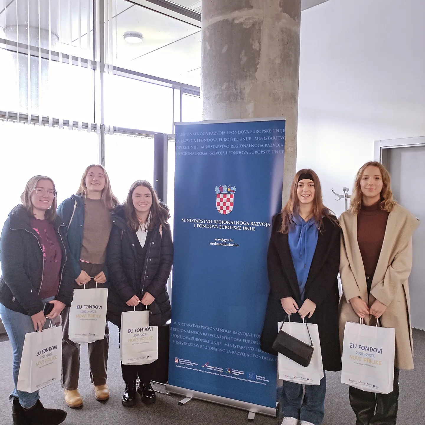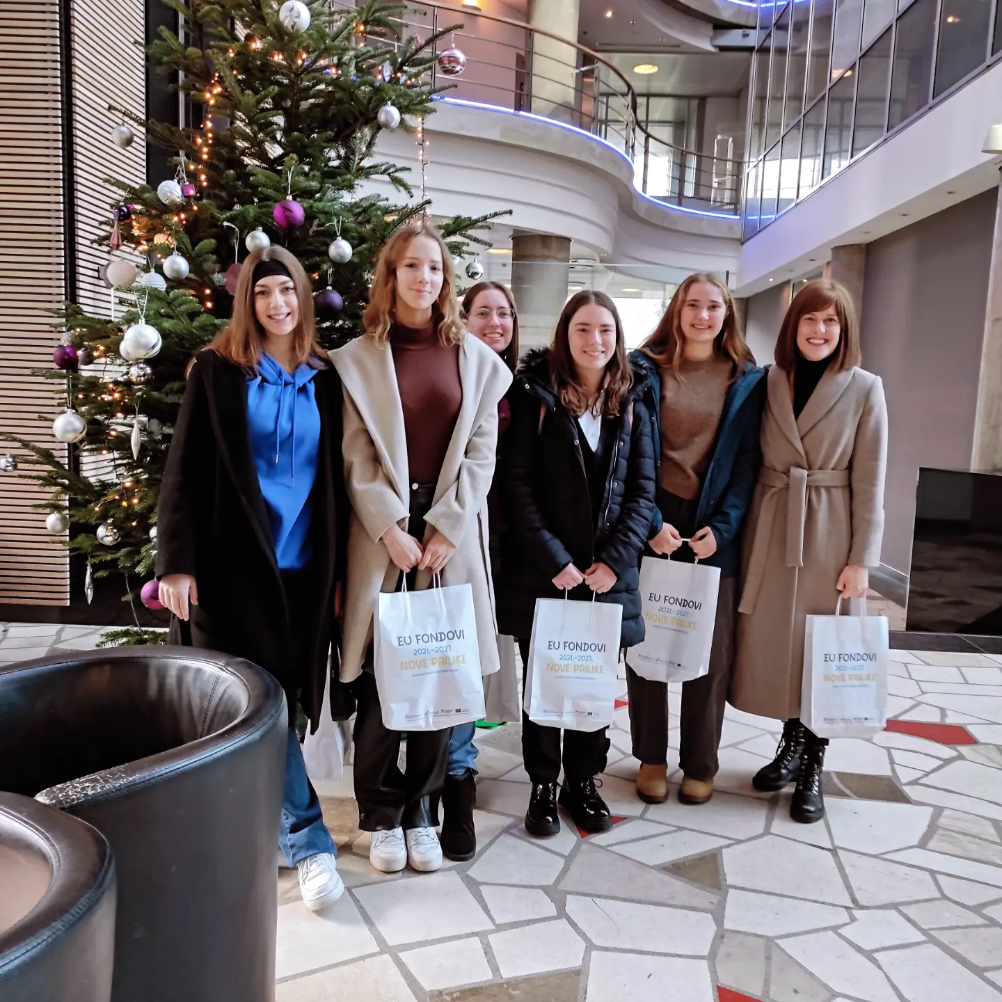 Učenice Ana Petrušanec Tomac, Tashi Meret Kutzli Benker, Lucija Juranić, Ela Trbović, Lola Marieta Grdaković i školska psihologinja Sabina Saltović sudjelovale su 11.12.2023. god. u studijskom posjetu u Zagrebu u sklopu projekta At School of Open Cohesion (ASOC) Interreg Italija - Hrvatska. Posjetile su Ministarstvo regionalnog razvoja i fondova Europske unije gdje su im svečano uručena priznanja za uspješan završetak edukativnog programa projekta (https://razvoj.gov.hr/vijesti/urucena-priznanja-za-uspjesno-sudjelovanje-u-projektu-asoc-at-school-of-open-cohesion/5466). Također, posjetile su Fakultet elektrotehnike i računalstva i iskusile primjenu teorijskih znanja u području elektrotehnike i računalstva kroz posjet fakultetskim laboratorijima.