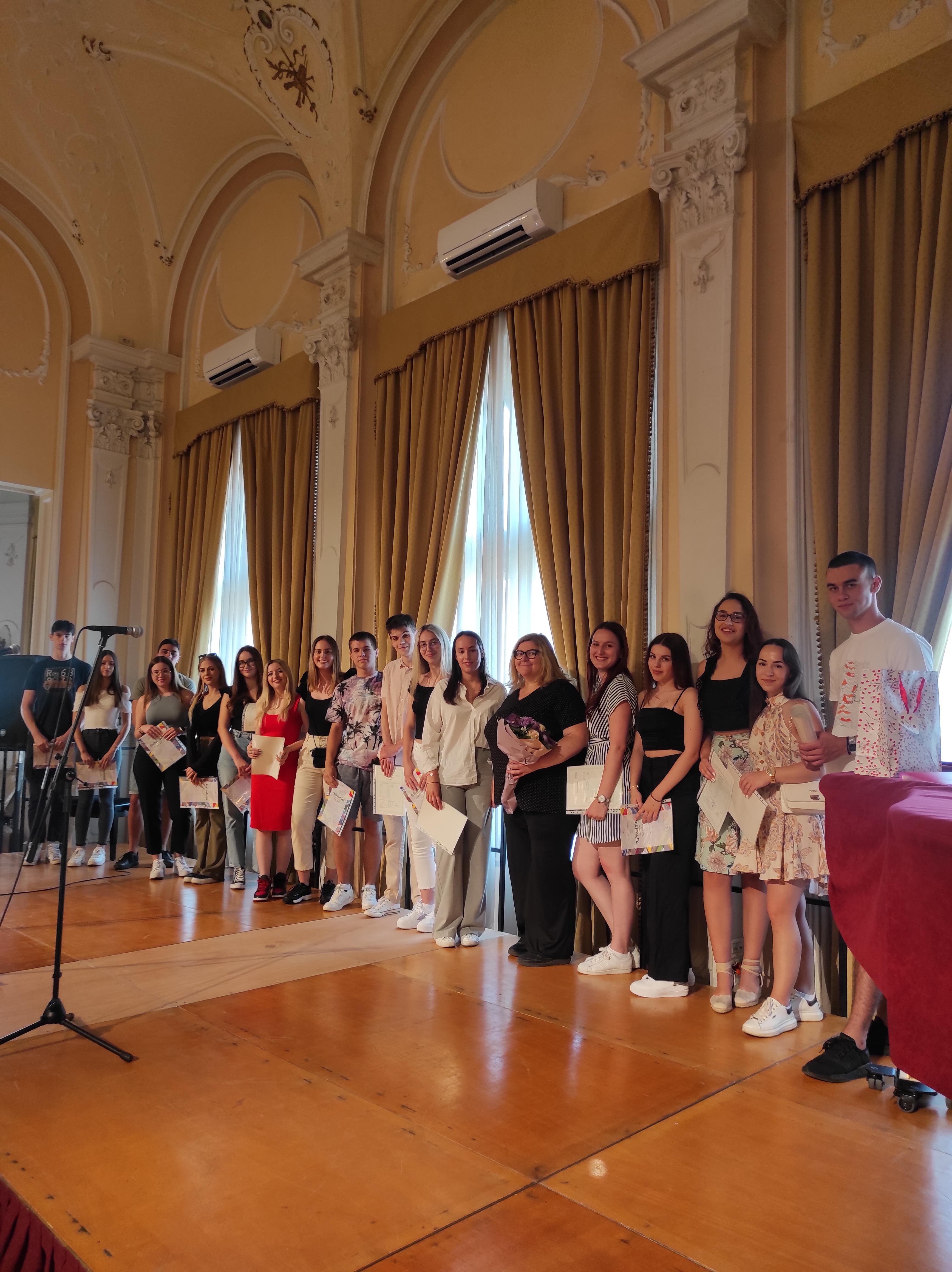 Razrednici maturanata uručili su svjedodžbe svojim učenicima, a ravnateljica škole prigodnim je poklonom darivala 28 maturanata koji su sve četiri godine srednjoškolskog obrazovanja prošli s odličnim uspjehom. Između njih 28 odabrana je učenica generacije 2022./2023. kojeg već 28. godinu nagrađuje Zaklada Ileana i Gilberta iz talijanskog grada Estea.