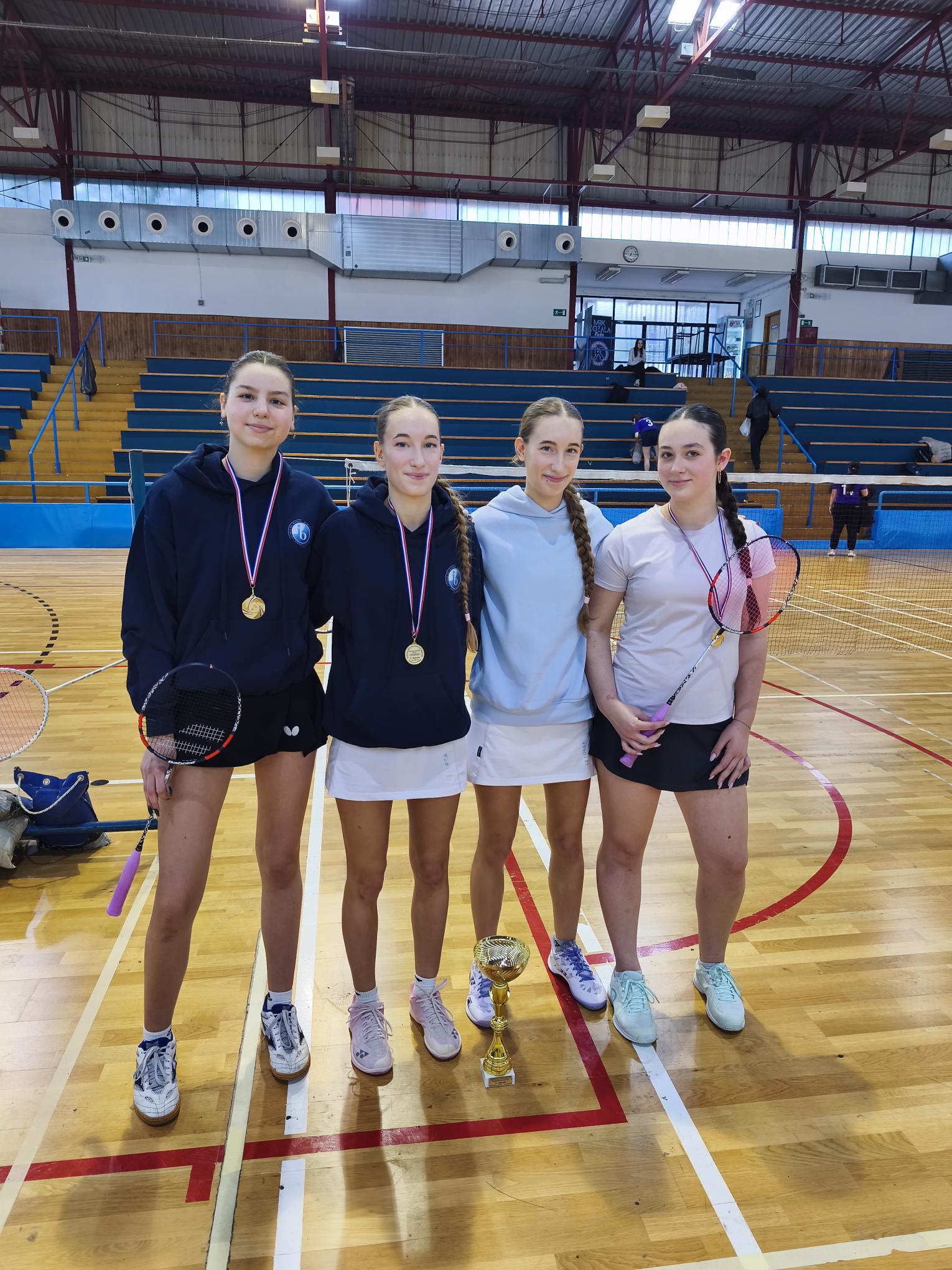 Cvita Zukić, Flora Zukić, Vanessa Krnić i Melita Švić uvjerljive su pobjednice županijskog natjecanja u badmintonu održanog 12.veljače u dvorani „Dinko Lukarić“.