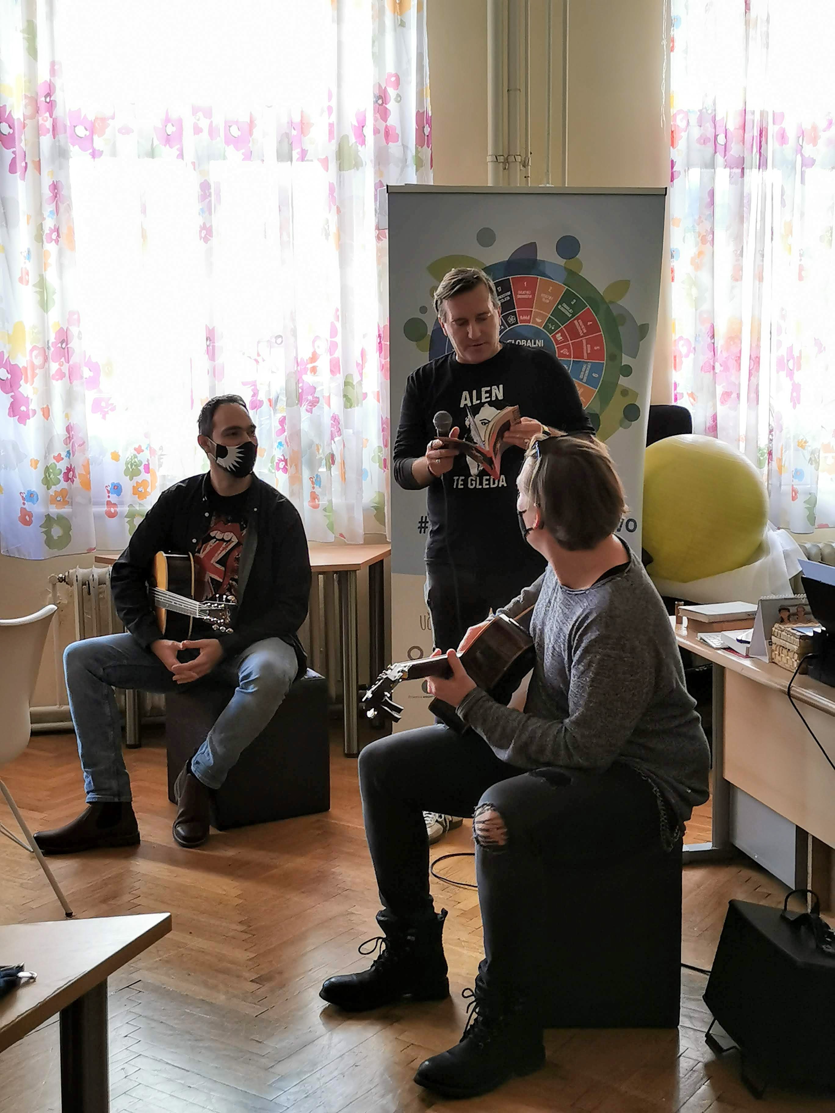 Da Dan škole ipak ne bi bio poput ostalih dana pobrinuo se je naš bivši učenik, danas prijatelj škole, glazbenik Ivan Pešut koji je ovog puta doveo kolegu glazbenika Dražena Turinu poznatijeg kao Šajeta u 4.c razred. Kako uz Šajetu nikada nije dosadno, tako je 4.c danas, dva sata uživao u pjesmi i priči poznatog opatijskog glazbenika i zabavljača. Susret je održan u sklopu projekta Back to School koji se već petu godinu održava u našoj školi.
