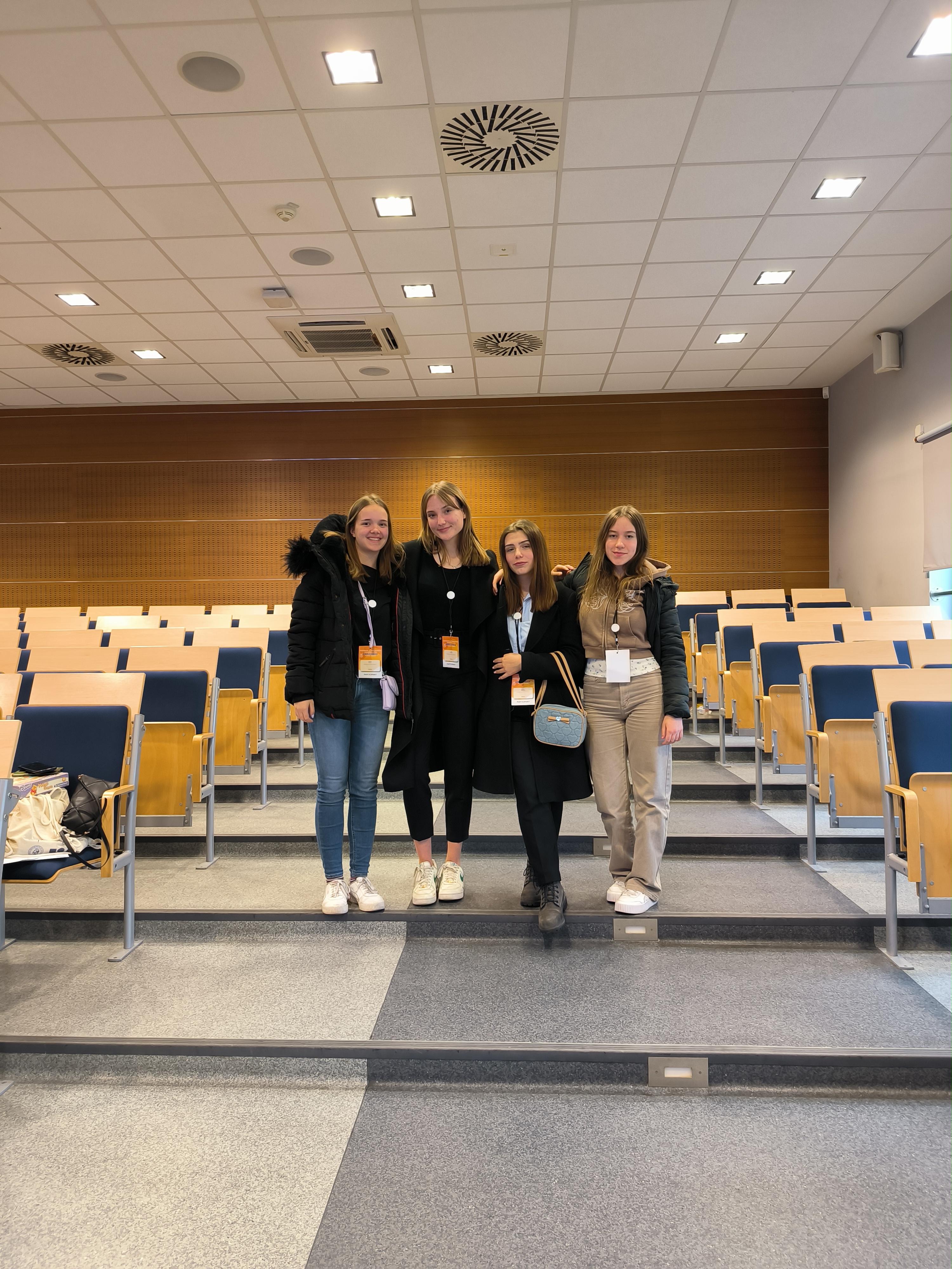 Učenice 2.b razreda Zrinka Miškić, Lana Vučetić, Petra Bušljeta i Nika Tomljanović u pratnji nastavnice matematike Danijele Mohorić, sudjeluju na Euromath konferenciji u Krakowu, Poljska, od 13. do 15. ožujka. Predstavile su i svoju prezentaciju The universe in a calculator.