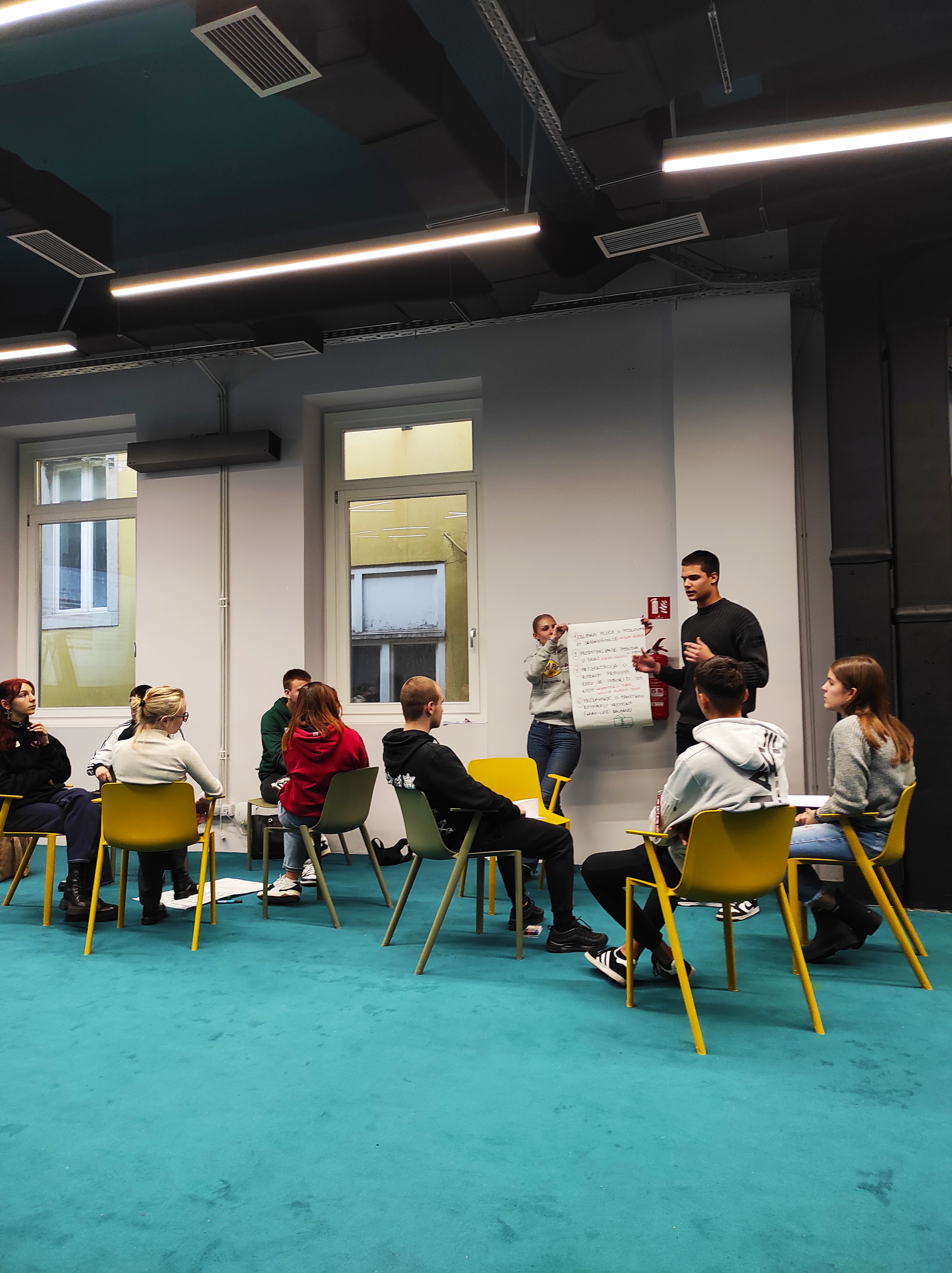 U četvrtak, 30. studenog 2023. godine, devetero učenika naše škole je zajedno sa srednjoškolcima iz Gimnazije Andrije Mohorovičića Rijeka, Drvodjeljske i strojarske škole Rijeka i Graditeljske škole za industriju i obrt sudjelovalo na zanimljivoj edukaciji u RiHubu u sklopu projekta "(Su)djelujem - vijeće učenika i učenica u demokratskoj školi". Tijekom edukacije učenici su imali priliku razgovarati sa savjetnicom za mlade Grada Rijeke, pri čemu je fokus razgovora bio na Programu za mlade Grada Rijeke za razdoblje od 2023. do 2030. godine. Uz to, upoznali su se sa Ciljevima za mlade EU te su osmišljavali aktivnosti za ostvarivanje navedenih ciljeva na razini škole i lokalne zajednice. Tijekom edukacije učenici su pokazali visoku razinu motiviranosti, angažiranosti i spremnosti na djelovanje.