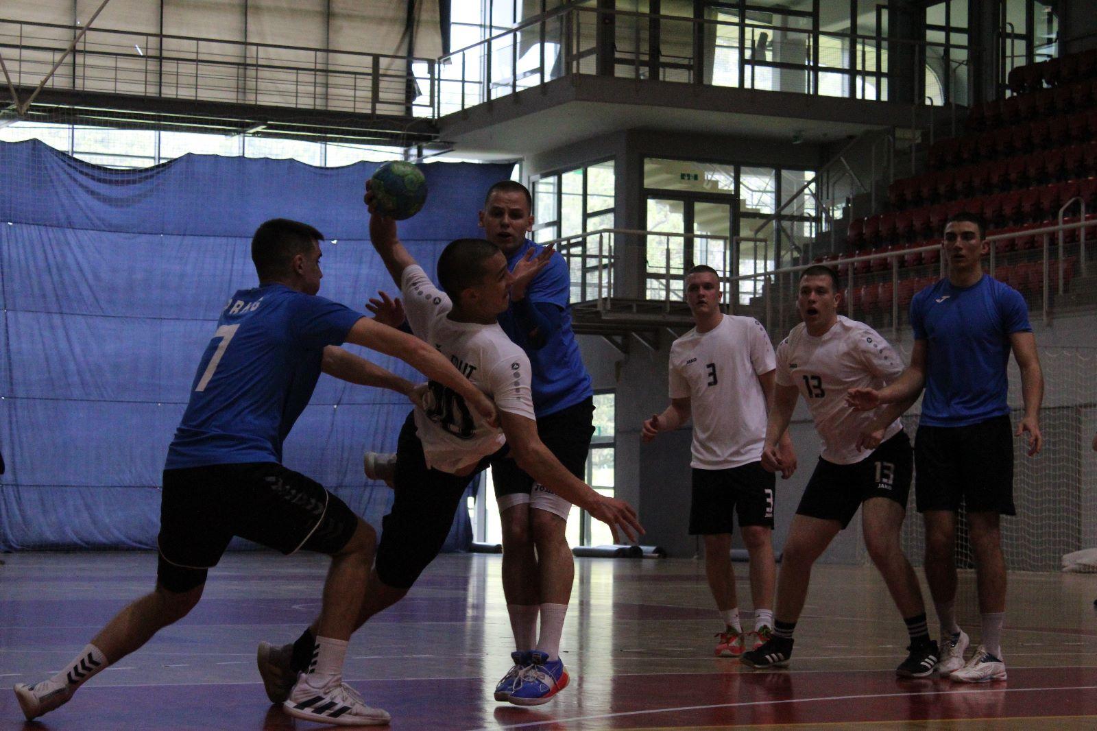 U grupnoj fazi naši su rukometaši igrali protiv gimnazije iz Šibenika i Elektrotehničke škole iz Splita. Protiv Šibenčana naši su dečki ostvarili uvjerljivu pobjedu rezultatom 19-10. Igrač utakmice bio je David Maričić sa šest zabijenih golova. Druga utakmica u skupini nije bila toliko lagana kao prva. Split je pružio dobru partiju i „zapaprio“ život našim rukometašima. Iako je rezultat na poluvremenu bio 7-5 za PRHG, Split se uspio vratiti te serijom od 4 pogotka preokrenuti rezultat. Naši momci su ipak pokazali kvalitetu te pobijedili rezultatom 14-12, a na toj utakmici posebno se istaknuo David Nadović sa šest pogodaka. Tim dvjema pobjedama Prva riječka hrvatska gimnazija bila je prva u skupini H te je ostvarila prolazak u četvrtinu finala.