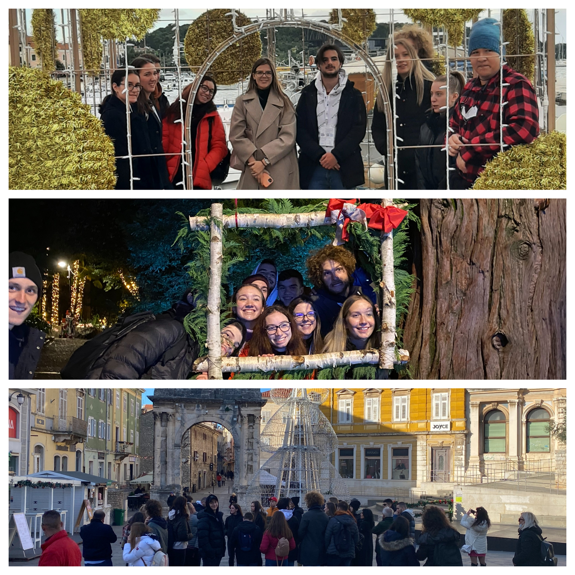 Treći dan Silab+Erasmus projekta obilježen je odlaskom u Istarske gradove Pulu i Rovinj. U oba su grada naši učenici preuzeli ulogu turističkih vodiča i gostima predstavili najbitnije znamenitosti gradova. U Puli su posjetili Arenu, Slavoluk Sergijevaca, Augustov hram kao i statuu Jamesa Joycea. Potom su u Rovinju istražili Crkvu sv. Eufemije, gradski trg i Balbijev luk. Pri povratku u Rijeku zaustavili su se u Opatiji gdje su imali priliku vidjeti čari adventa u predbožićno vrijeme.