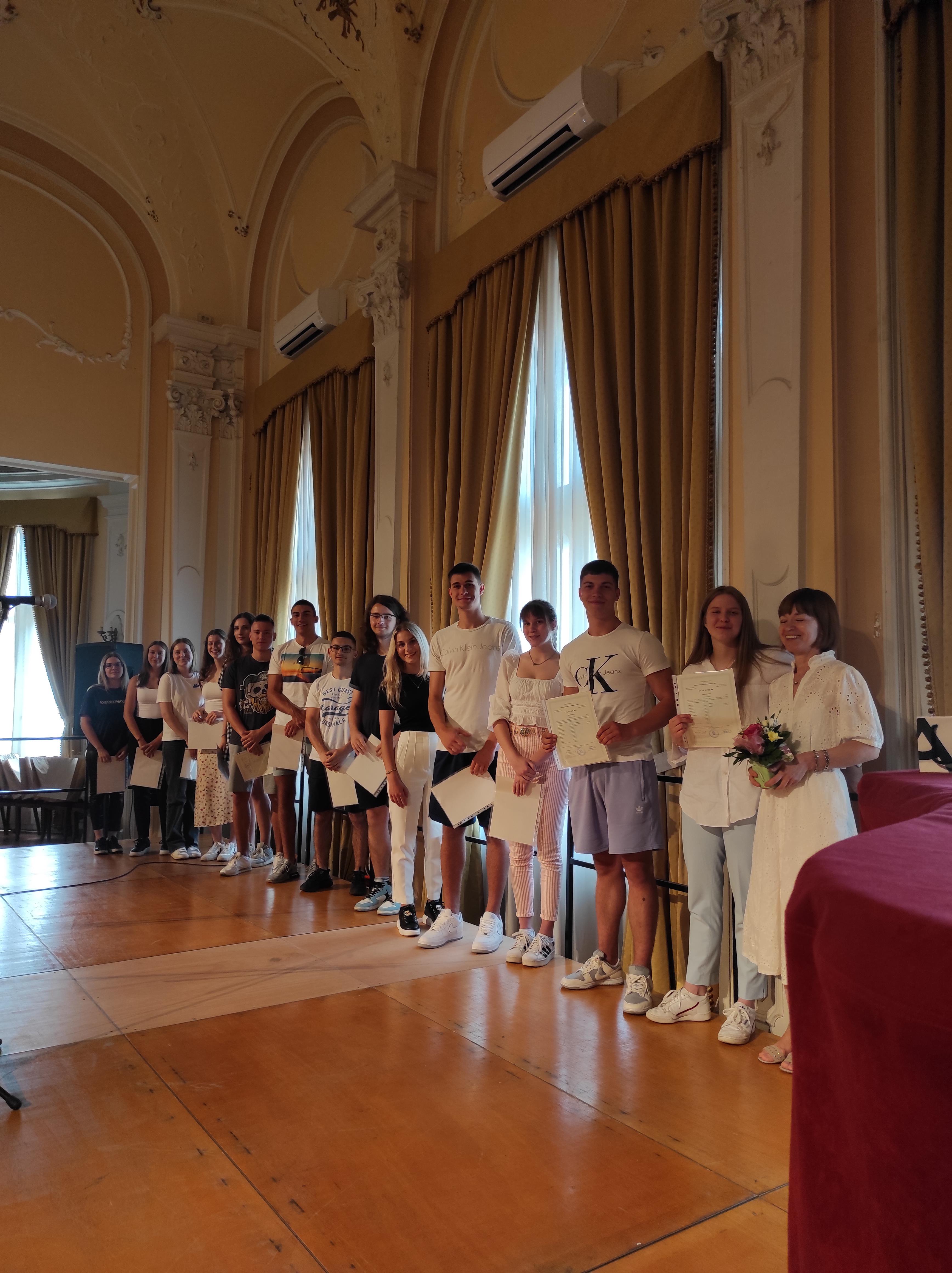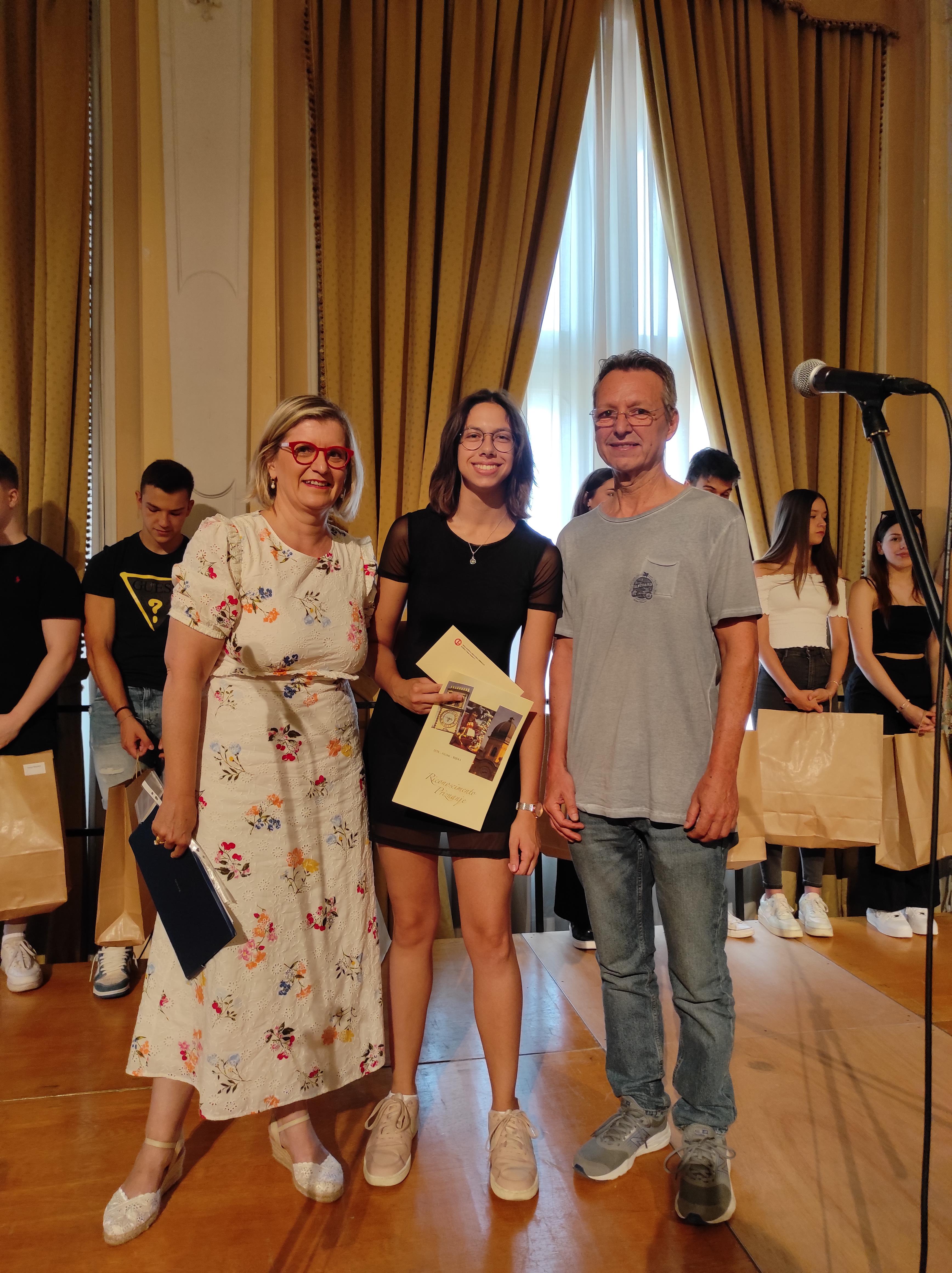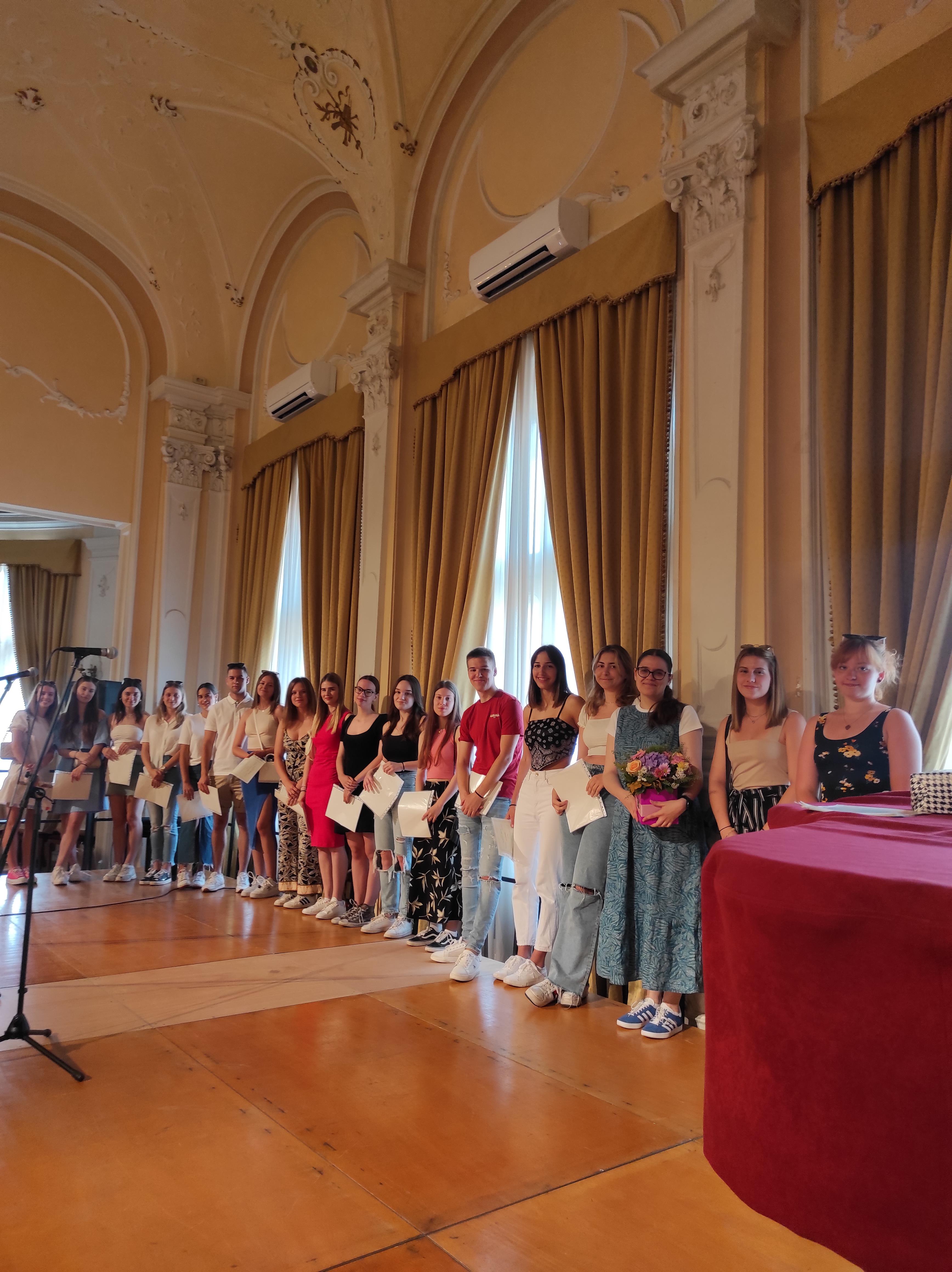 Razrednici maturanata uručili su svjedodžbe svojim učenicima, a ravnateljica škole prigodnim je poklonom darivala 28 maturanata koji su sve četiri godine srednjoškolskog obrazovanja prošli s odličnim uspjehom. Između njih 28 odabrana je učenica generacije 2022./2023. kojeg već 28. godinu nagrađuje Zaklada Ileana i Gilberta iz talijanskog grada Estea.