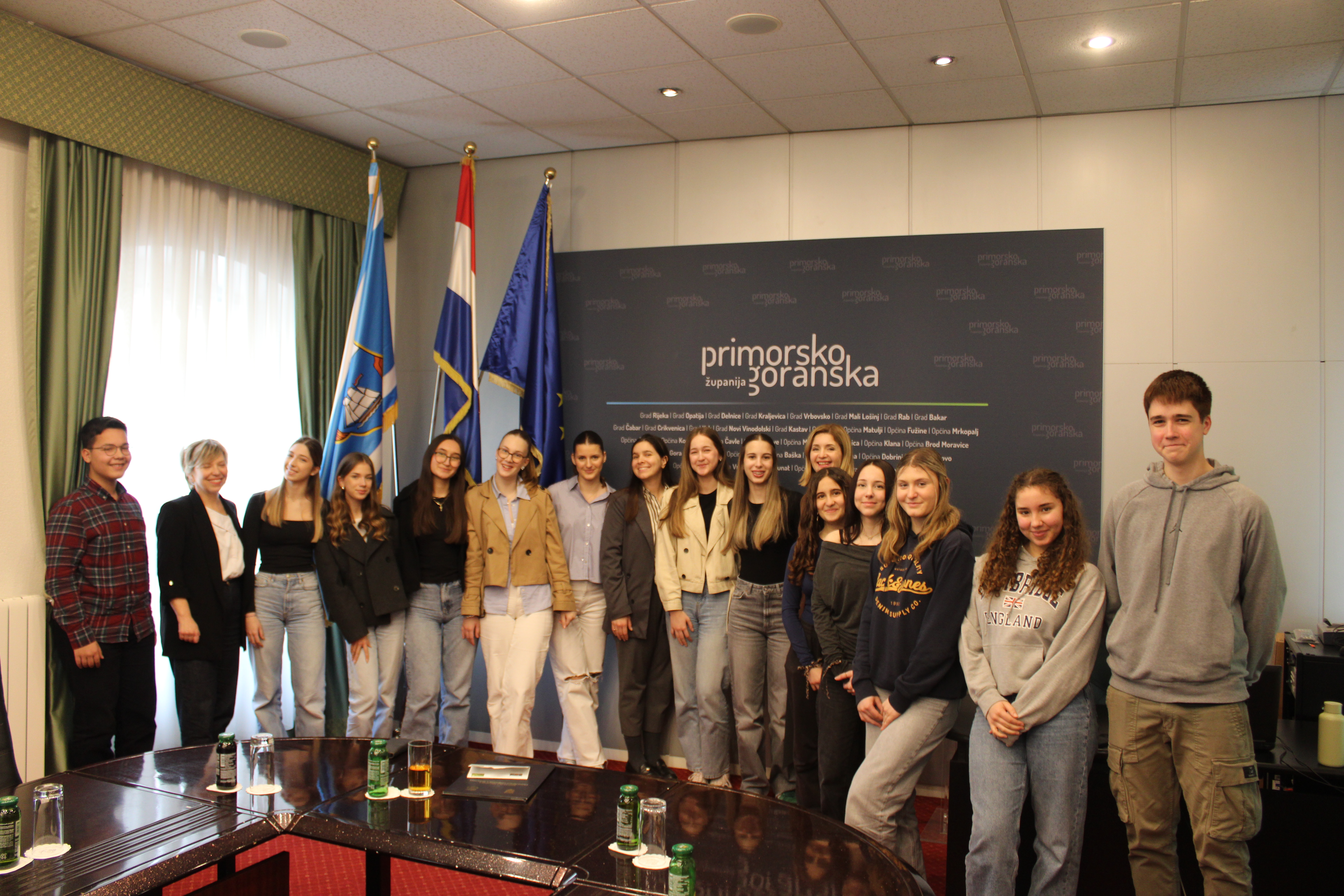 Učenike 1. b razreda Prve riječke hrvatske gimnazije primila je Ermina Duraj, pročelnica Upravnog odjela za poslove župana i Županijske skupštine, kao predstavnica župana Zlatka Komadine. Prijem je održan u sklopu Erasmus+ projekta "P.S. – Pokreni solidarnost" koji se već niz godina provodi u školi.