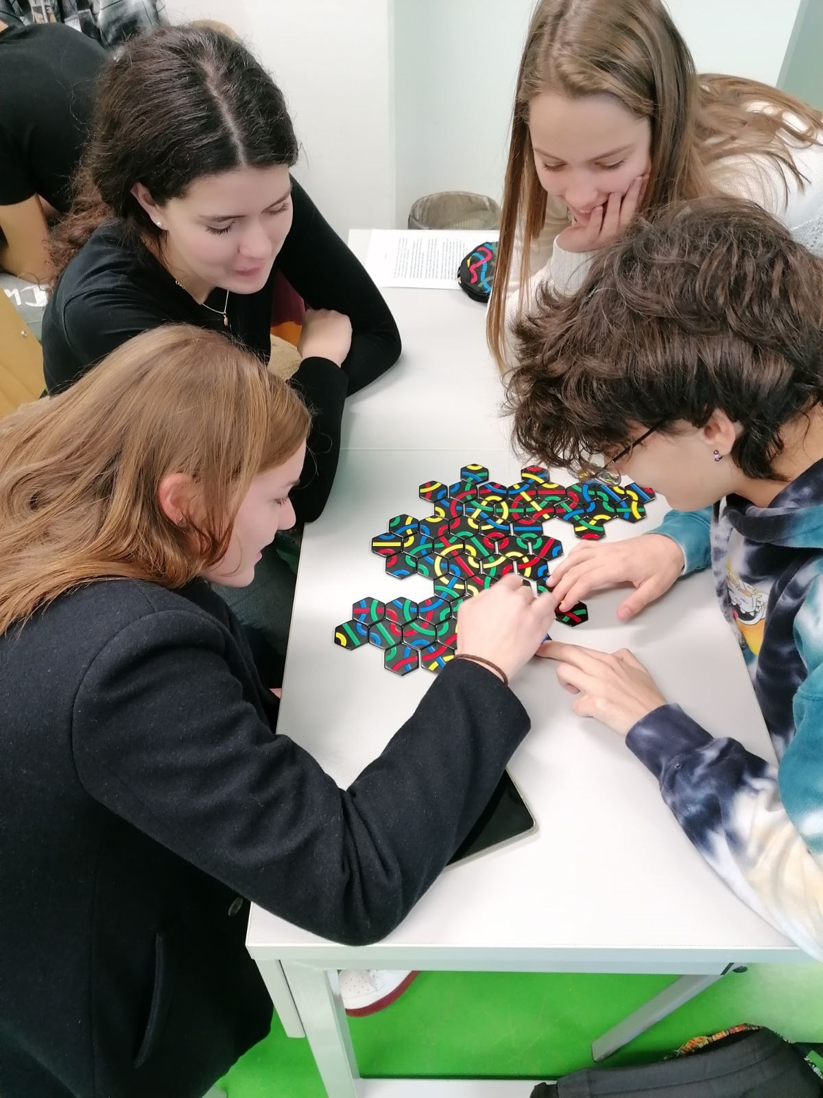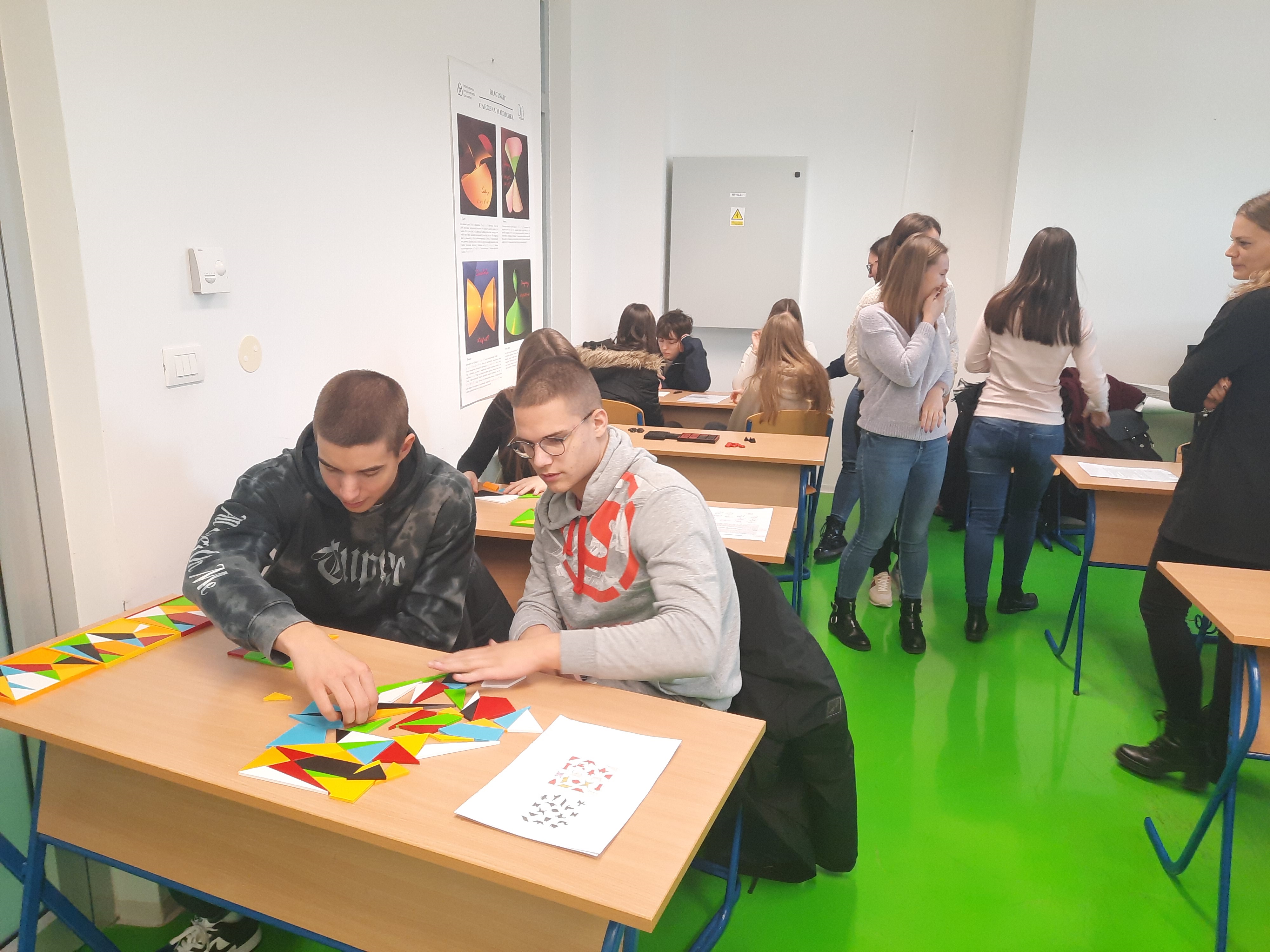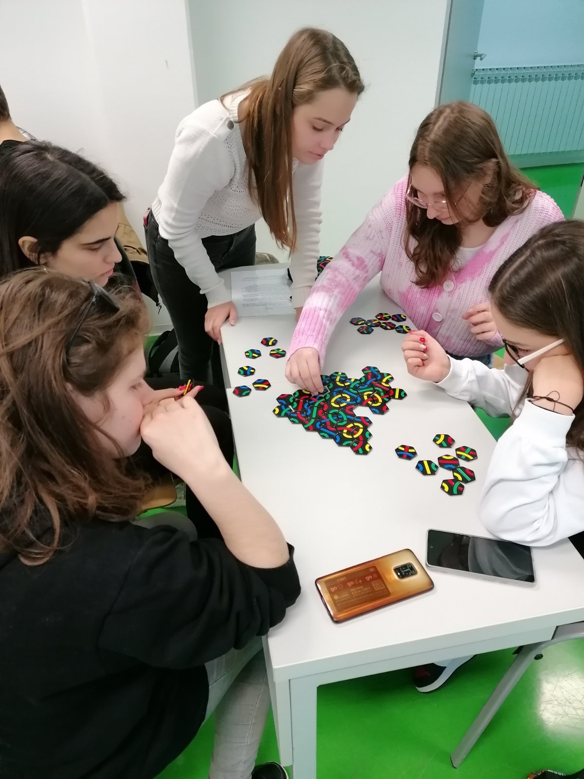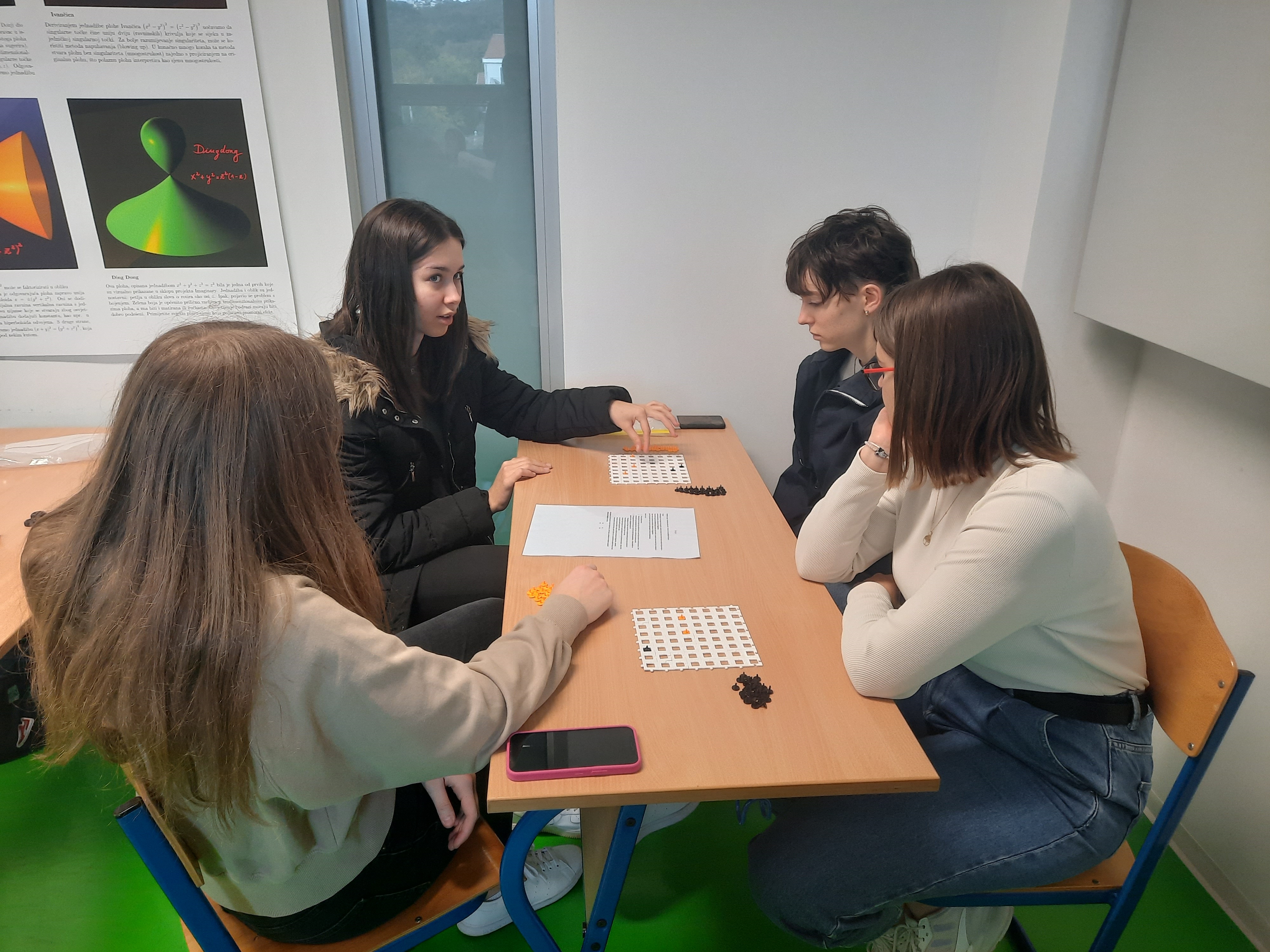 Četrdesetak učenika Prve riječke hrvatske gimnazije prvi dan prosinca, kada se dulji niz godina obilježava Večer matematike, proveli su na Fakultetu matematike u Rijeci. Ljubazni domaćini za nas su organizirali matematičke igre Hex, Tantrix, Agon, Royal Game of Ur, Prime Stone, Set, Spot it!, Sesqui, Produto, Tangram, Ostomachion, Pentomino, Trilja, Pentalpha, Kule od Hanoja. Učenici su se najprije upoznali s načinom igranja svake igre, a zatim su u parovima ili manjim skupinama odigrali neke od njih. Igrajući se ponovili su matematičke pojmove, a vježbali su i jednu vještinu koja nam u današnje vrijeme svima nedostaje, strpljenje.