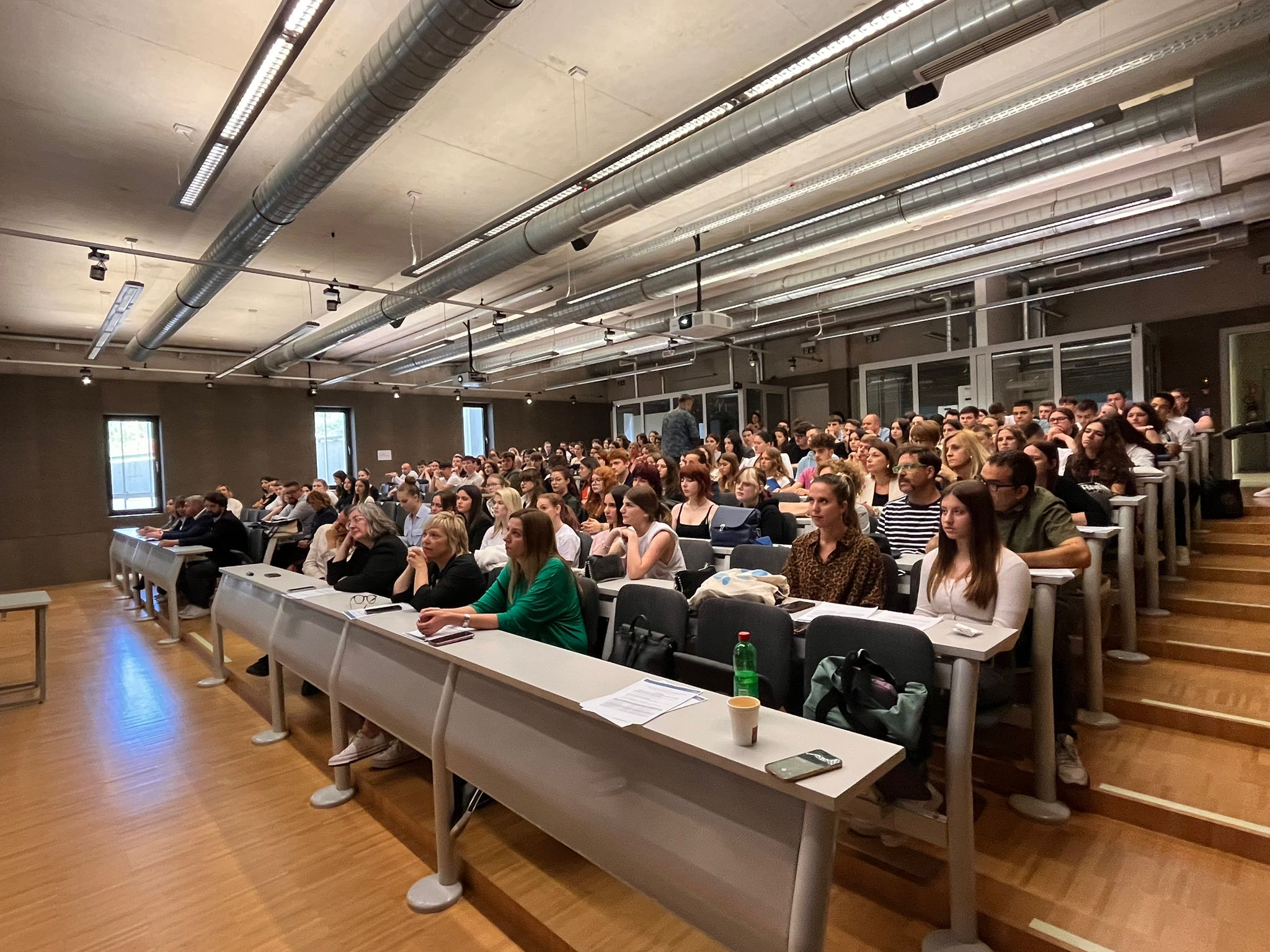 Završni županijski događaj ovogodišnjeg programa Škola i zajednica (ŠiZ)okupio je oko 150 učenika i učenica ŠIZ-a zajedno s njihovim nastavnicama/nastavnicima kao i ravnateljicama/ravnateljima škola. Uz njih su događaju prisustvovali zamjenik župana PGŽ Petar Mamula, gradonačelnik Rijeke Marko Filipović te pročelnice odjela za odgoj i obrazovanje županije i grada, mr. sc. Edita Stilin i Iva Erceg. Predstavljanju su nazočili i autorice/i kurikula fakultativnog predmeta Škola i zajednica (ŠiZ), među njima i naše nastavnice Laura Angelovski i Helena de Karina te predstavnici institucijskih nositelja projekta (Sveučilište u Rijeci / University of Rijeka, Prva riječka hrvatska gimnazija i Institut za društvena istraživanja u Zagrebu).